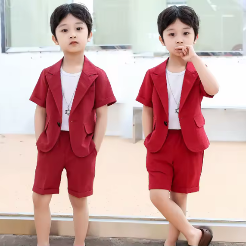 Designed with both style and comfort in mind, this baby boys summer suit offers a perfect balance between elegance and practicality. The high-quality stitching and durable materials ensure long-lasting wear, while the modern design keeps children looking trendy and confident. Whether for a wedding, graduation, party, or photography session, this 2-piece jacket and shorts set is a wonderful addition to any young boy’s wardrobe.