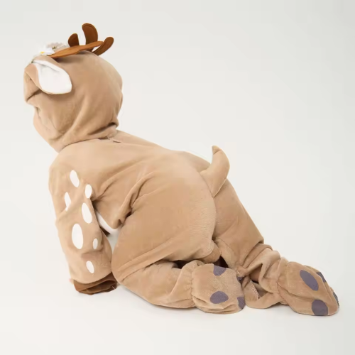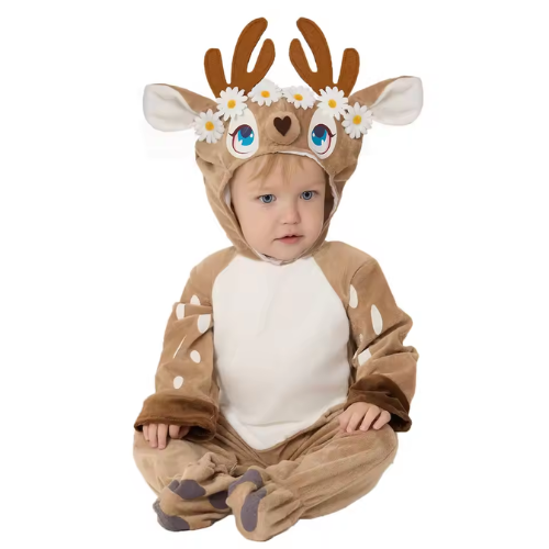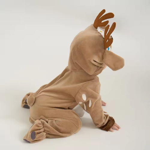 This costume features a soft hooded romper that keeps your baby comfortable while looking adorable. The hood is designed with deer-inspired details, adding a fun and playful look. The romper provides full coverage and warmth, making it suitable for cooler seasons and indoor celebrations.