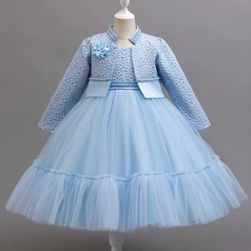 Designed with attention to comfort and style, this girls dress and coat set offers both practicality and beauty. The lightweight yet durable material allows children to move freely while maintaining a neat and fashionable appearance. Whether worn to a party, celebration, or casual outing, this princess dress outfit is a lovely addition to any girl’s wardrobe, combining sweetness, elegance, and modern fashion.